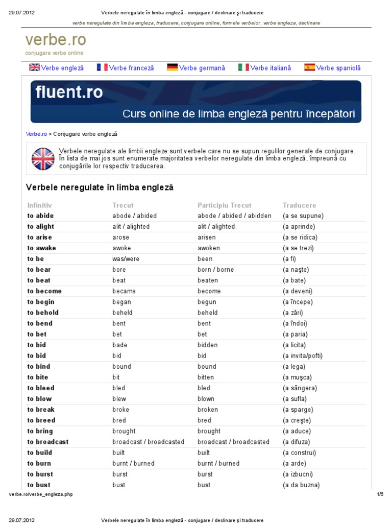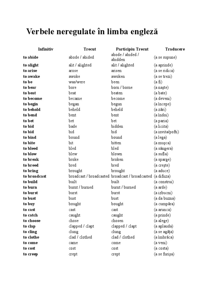 Engleza Romana Lista Verbelor Neregulate Pdf Wellness
