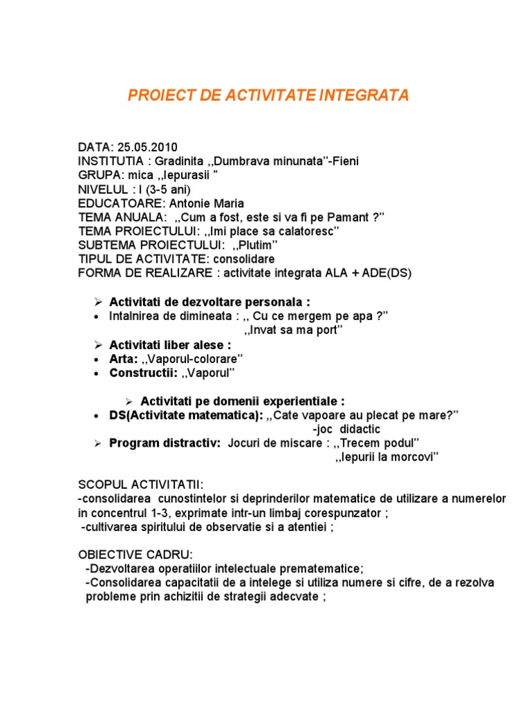 Proiect De Activitate Integrata
