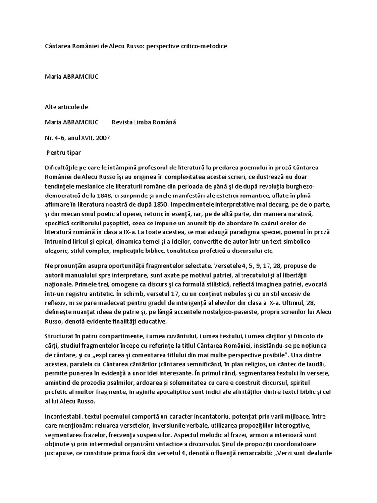 Russo Alecu Cantarea Romaniei Aprecieri Pdf
