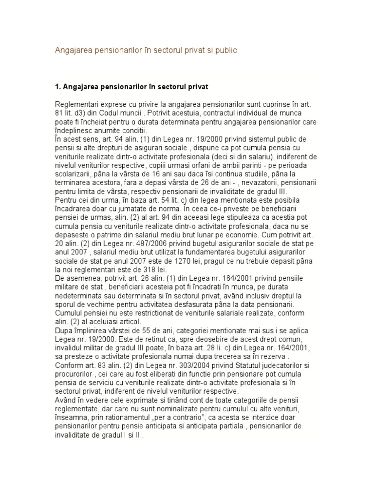 Angajarea Pensionarilor In Sectorul Privat Si Public