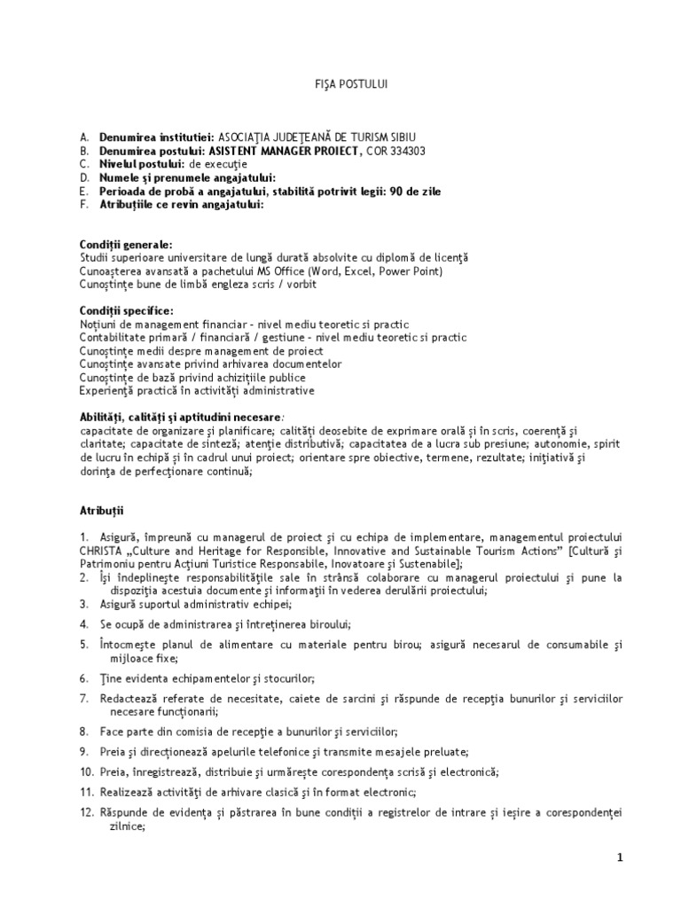 Fisa Postului Asistent Manager Ajts