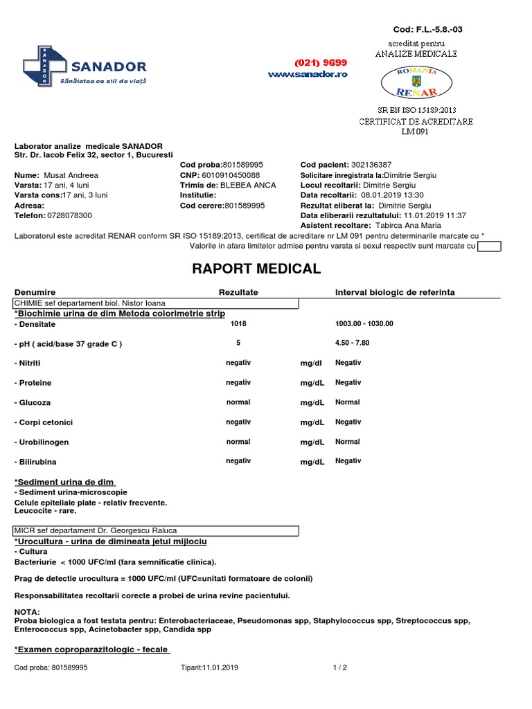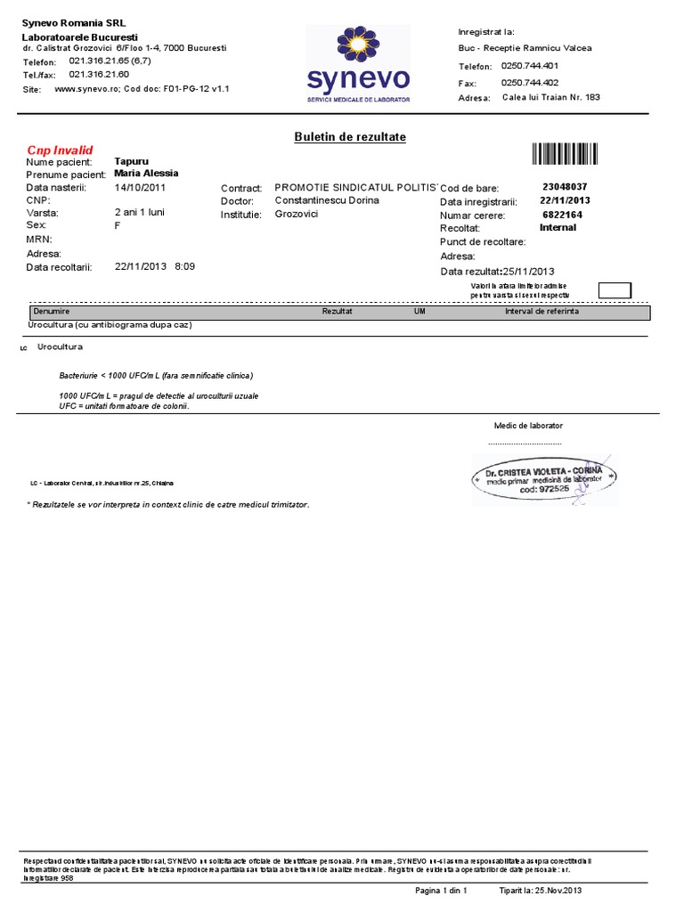 Bacteriurie 1000 Ufc Ml Fara Semnificatie Clinica
