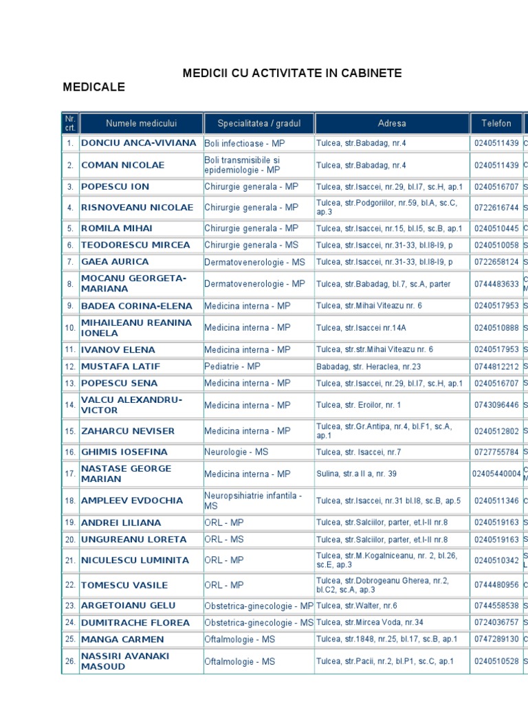 Cabinet Cardiologie Chirvasuta Str 1848 Bl 7 Sc D Ap 5 Parter Tulcea 2020