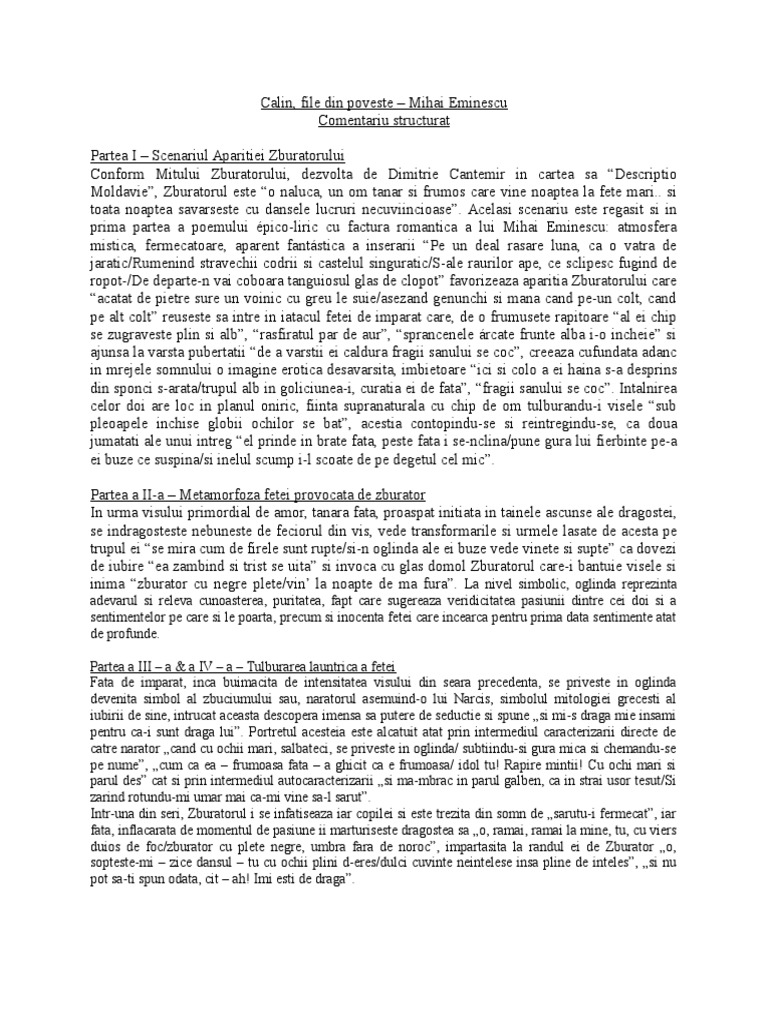Calin File Din Poveste Comentariul Literar Mihai Eminescu Referat