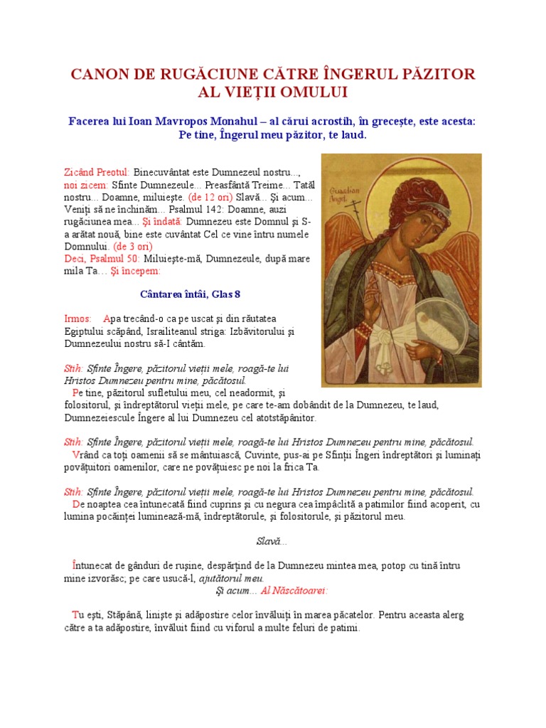 Canonul De Rugăciune Către Ingerul Păzitor Al Vieții Omului Biserica Ortodoxa Romana Parohia Dusseldorf