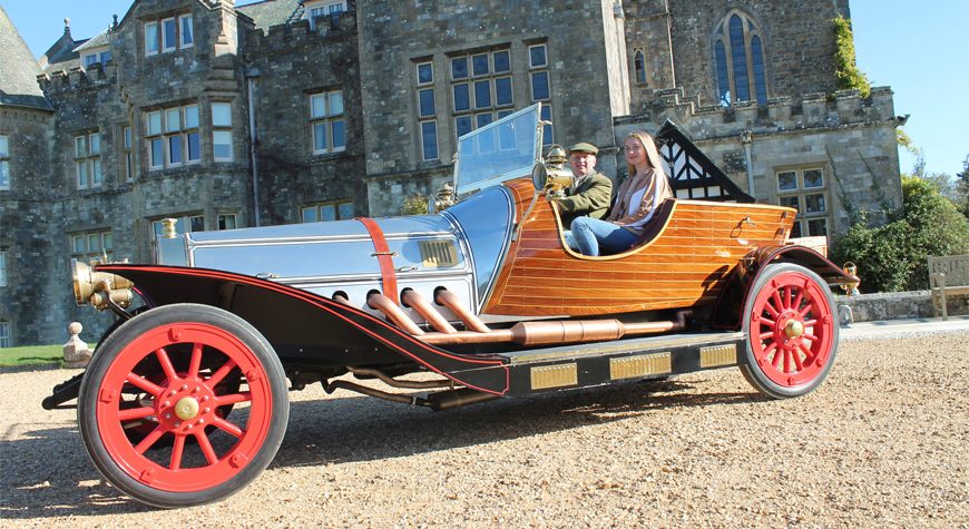 Polished aluminium wooden boat body sweeping fenders large red wheels sumptuous leather seats and lots of brass. This chitty replica was started in 1998 and has been totally constructed from scratch except for the ford v6 engine and automatic gearbox which were chosen because this combination was used in the original film car. From the classic 1968 fantasy musical chitty chitty bang bang comes this detailed replica of the title car which derives its odd name from its unique motor sounds. Several were made and the finished creation was quite a masterpiece.
