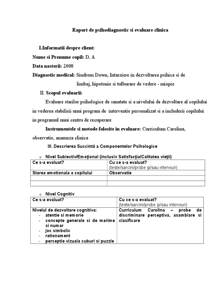 Model Raport Evaluarea Saƒnaƒtaƒa Ii Mintale Ceica