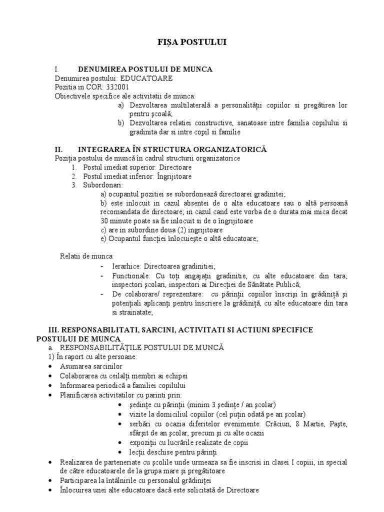 Doc Fisa Post Educatoare Alina Stanciulescu Academia Edu