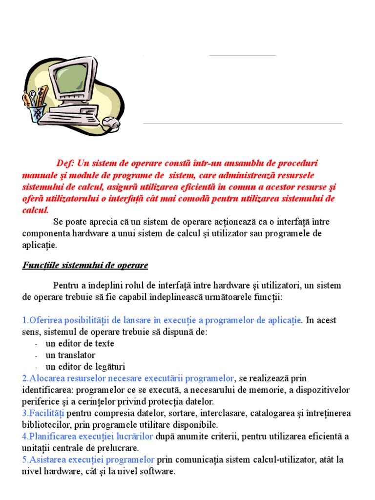 Sistemul De Operare Componentele Funcţiile Si Clasificarea Sistemelor De Operare