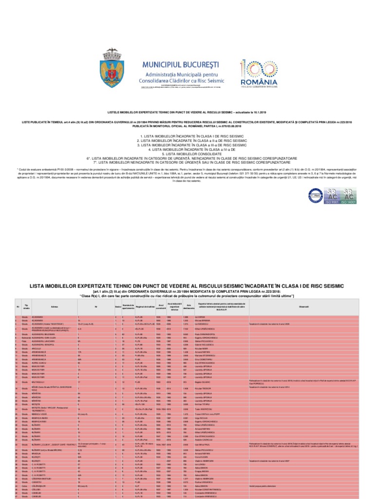 Lista Imobilelor Expertizate Seismic Bucuresti 01 2019