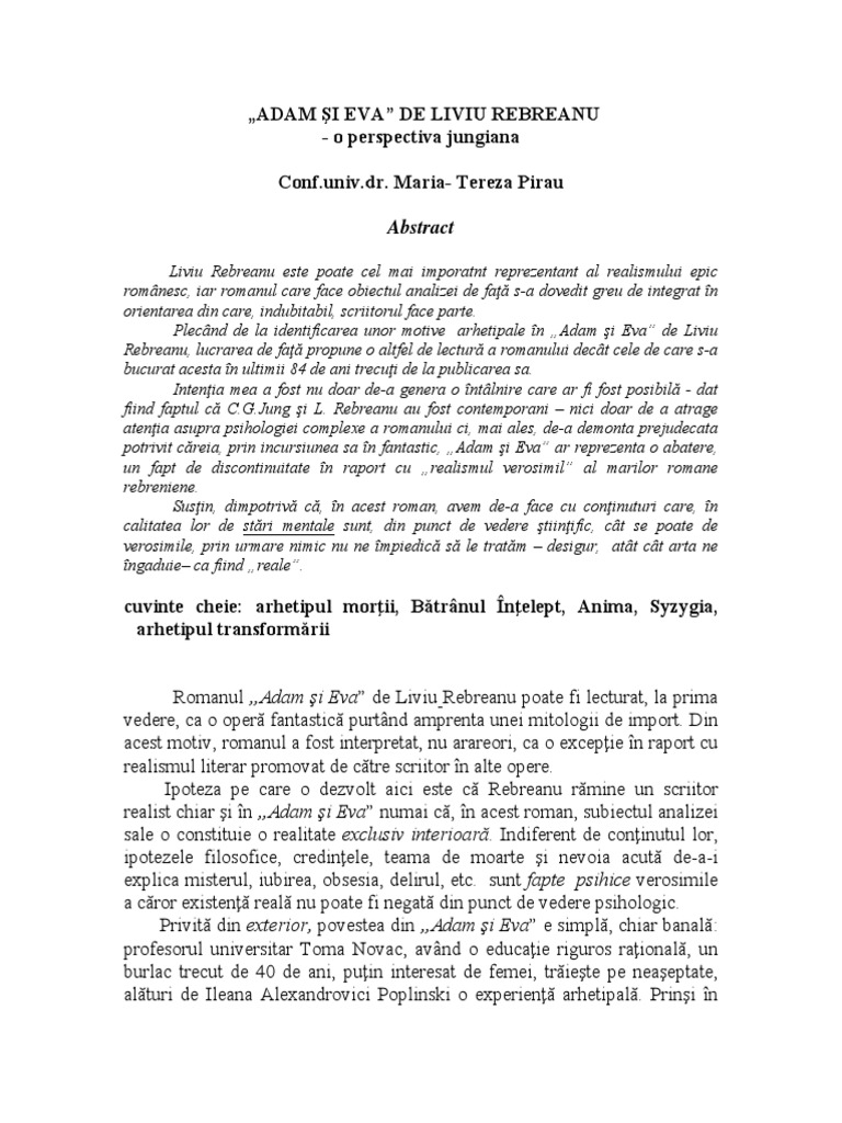Pdf Liviu Rebreanu Adam Si Eva Dragos Pino Academia Edu