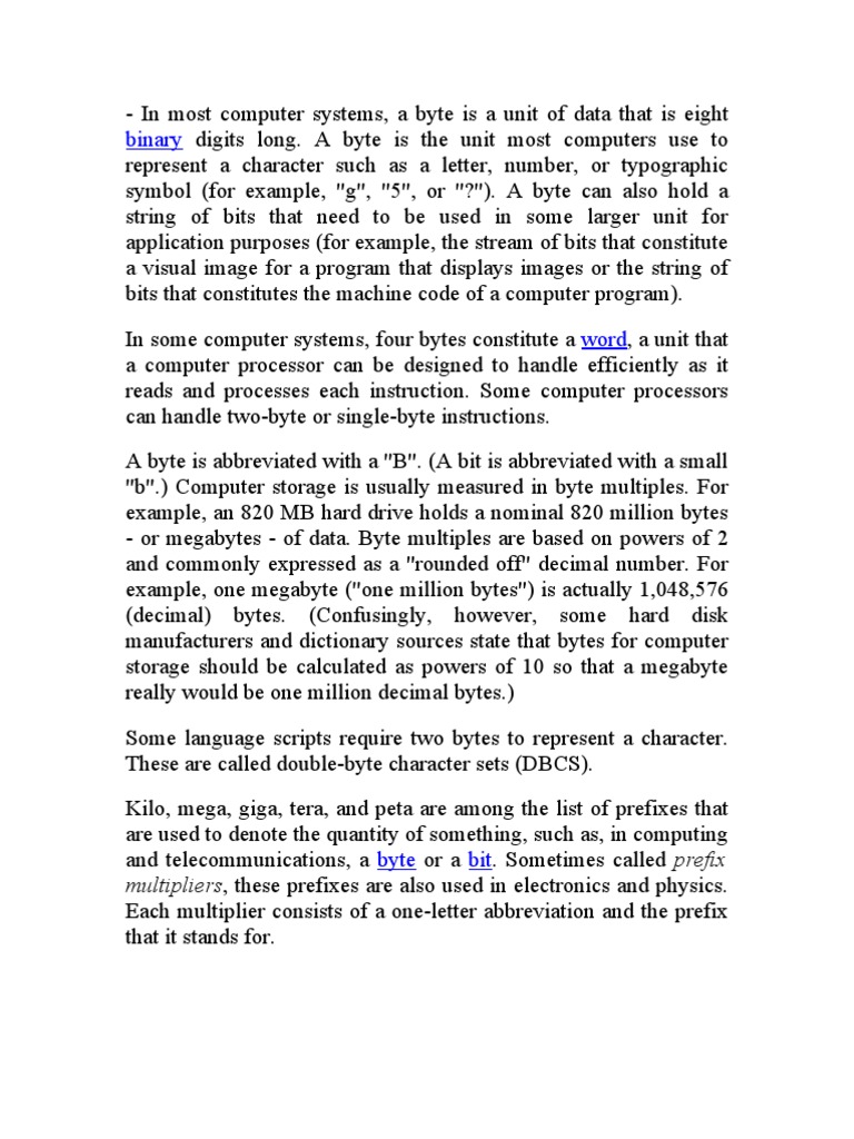 Unitati De Masura Byte Bit