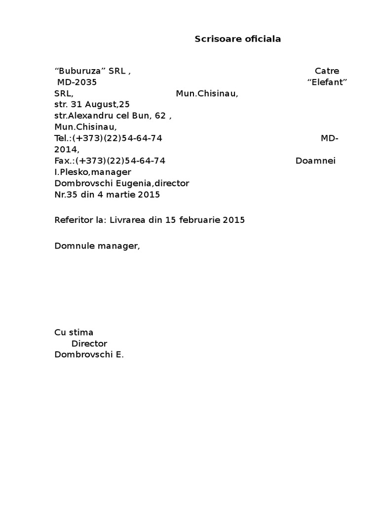 Scrisoare De Afaceri Oficială