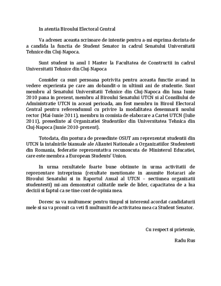 Rus Radu Aurel Scrisoare De Intentie