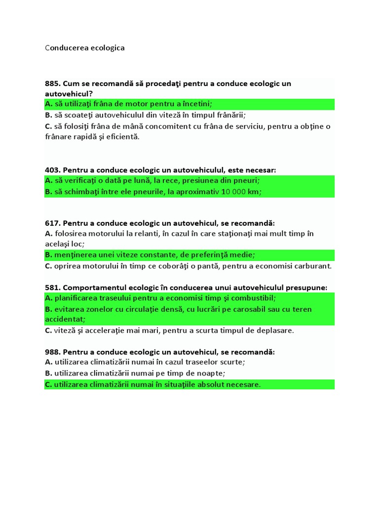 Intrebări Chestionare Auto Drpciv Capitolul Conducere Ecologică Categoria B B1 Tr