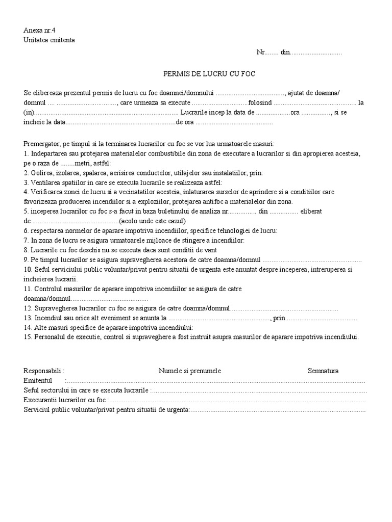 Model De Permis De Lucru Cu Foc