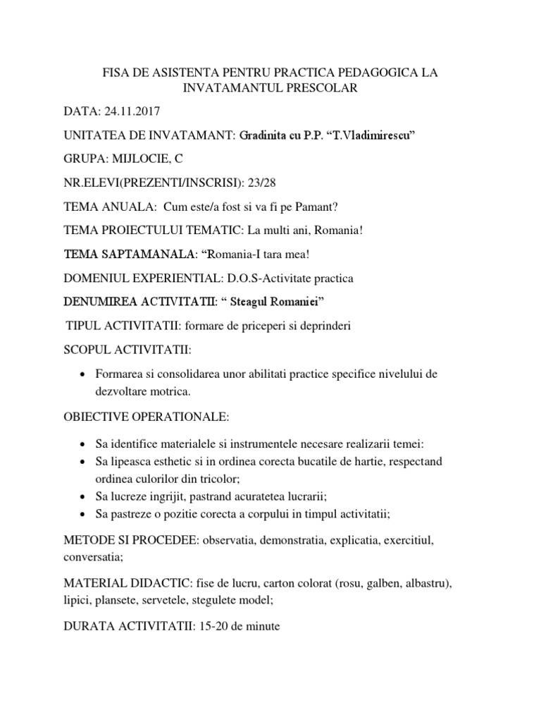 Fisa De Asistenta Pentru Practica Pedagogica La Invatamantul Prescolar Docx