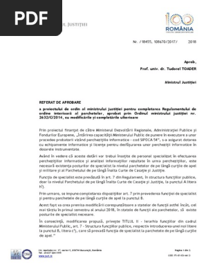 Ordinul Nr 2337 2018 Pentru Modificarea și Completarea Regulamentului De Ordine Interioară Al Parchetelor Aprobat Prin Ordinul Ministrului Justiției Nr 2 632 C 2014 Lege5 Ro