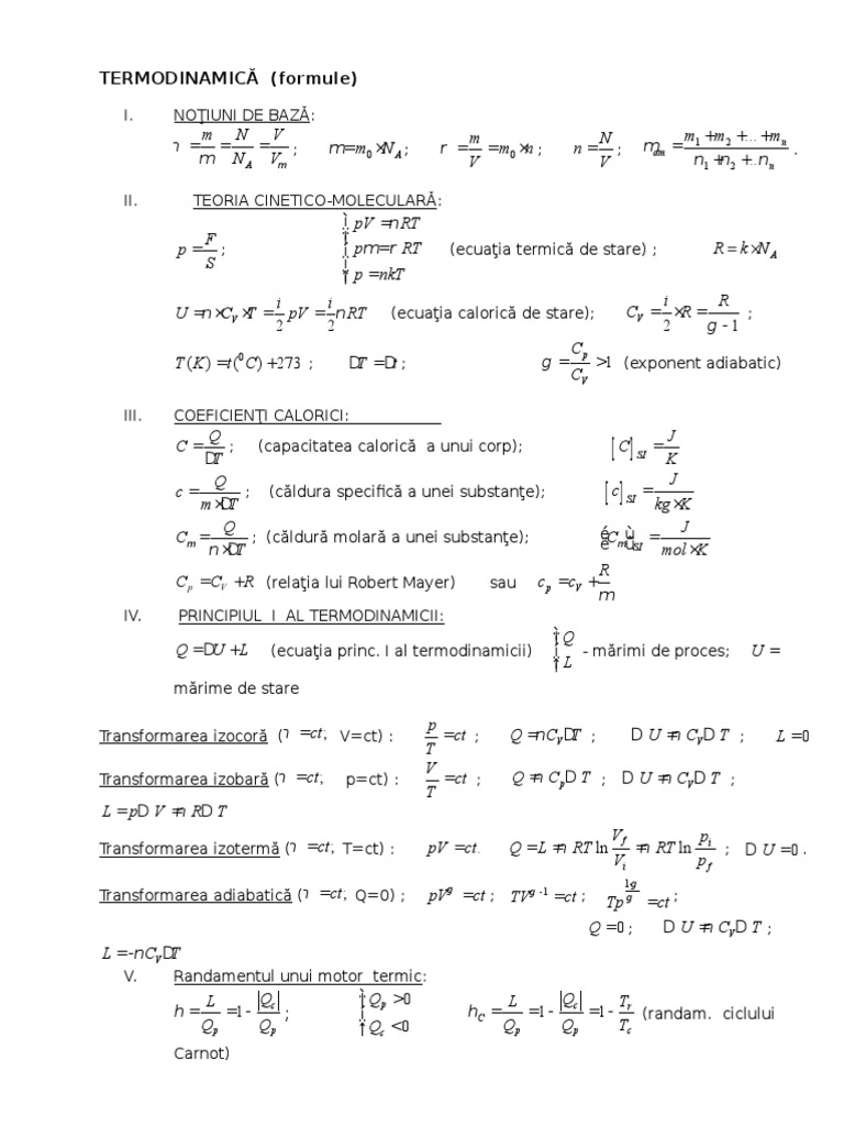Termodinamică Formule