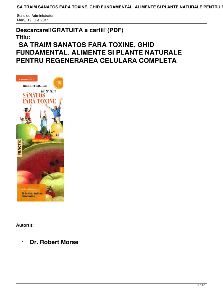 Sa Traim Sanatos Fara Toxine Pdf Traim Sanatos Fara Toxine Robert Morse Pret Published By Traim Sanatos Fara Toxine Va Arata Cum Sa Va Curatati Organismul De