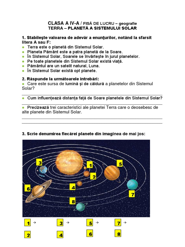 Fisa De Lucru Planetele Sistemului Solar