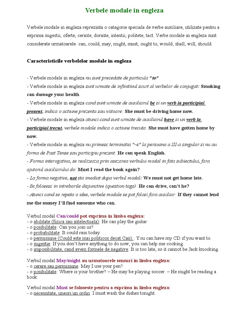 Verbe Modale In Engleza